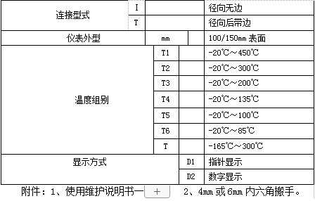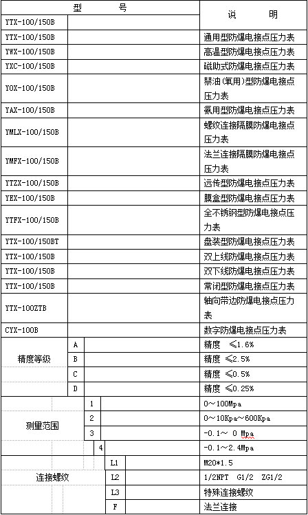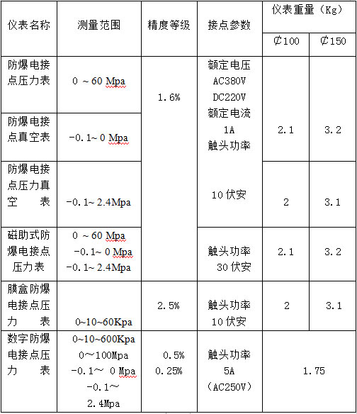 防爆電接點(diǎn)壓力表選型表: