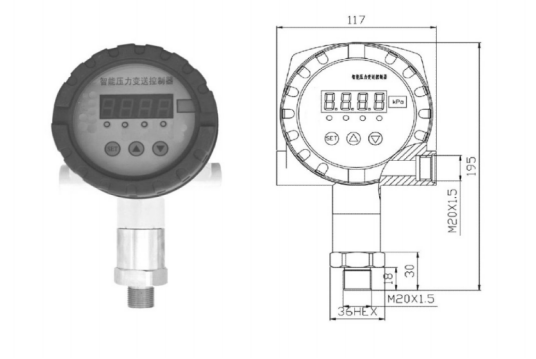 智能壓力控制器是及集壓力測(cè)量,顯示、輸出、控制于一體的智能數(shù)顯壓力測(cè)控產(chǎn)品。該產(chǎn)品為全電子結(jié)構(gòu),前端采用帶隔離膜充油壓阻式傳感器,輸出信號(hào)由高精度、低溫漂的放大器放大處理,送入高精度的A/D轉(zhuǎn)換器,轉(zhuǎn)換成微處理器可以處理的數(shù)字信號(hào),經(jīng)過(guò)運(yùn)算處理的信號(hào)控制四路電器開關(guān),對(duì)控制系統(tǒng)壓力進(jìn)行測(cè)控。該產(chǎn)品使用靈活,操作簡(jiǎn)單,安全可靠,廣泛應(yīng)用于水電、自來(lái)水、石油、化工、機(jī)械、液壓等行業(yè),對(duì)流體介質(zhì)的壓力進(jìn)行測(cè)量顯示和控制。