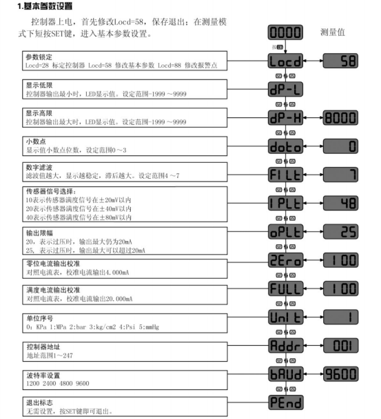 智能壓力控制器參數(shù)分為3組,進(jìn)入不同的參數(shù)項(xiàng)即可對(duì)各個(gè)參數(shù)進(jìn)行設(shè)定。