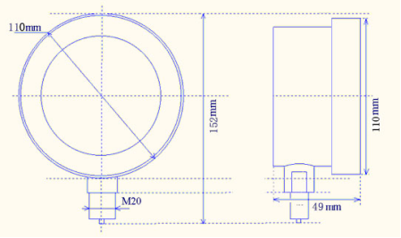 儀表使用干式陶瓷壓力傳感器,對安裝的角度無要求。儀表壓力導(dǎo)入口使用M20的外羅紋和壓力容器相連接,也可定制其他類型的連接接口。儀表外型尺寸見其它章節(jié)。